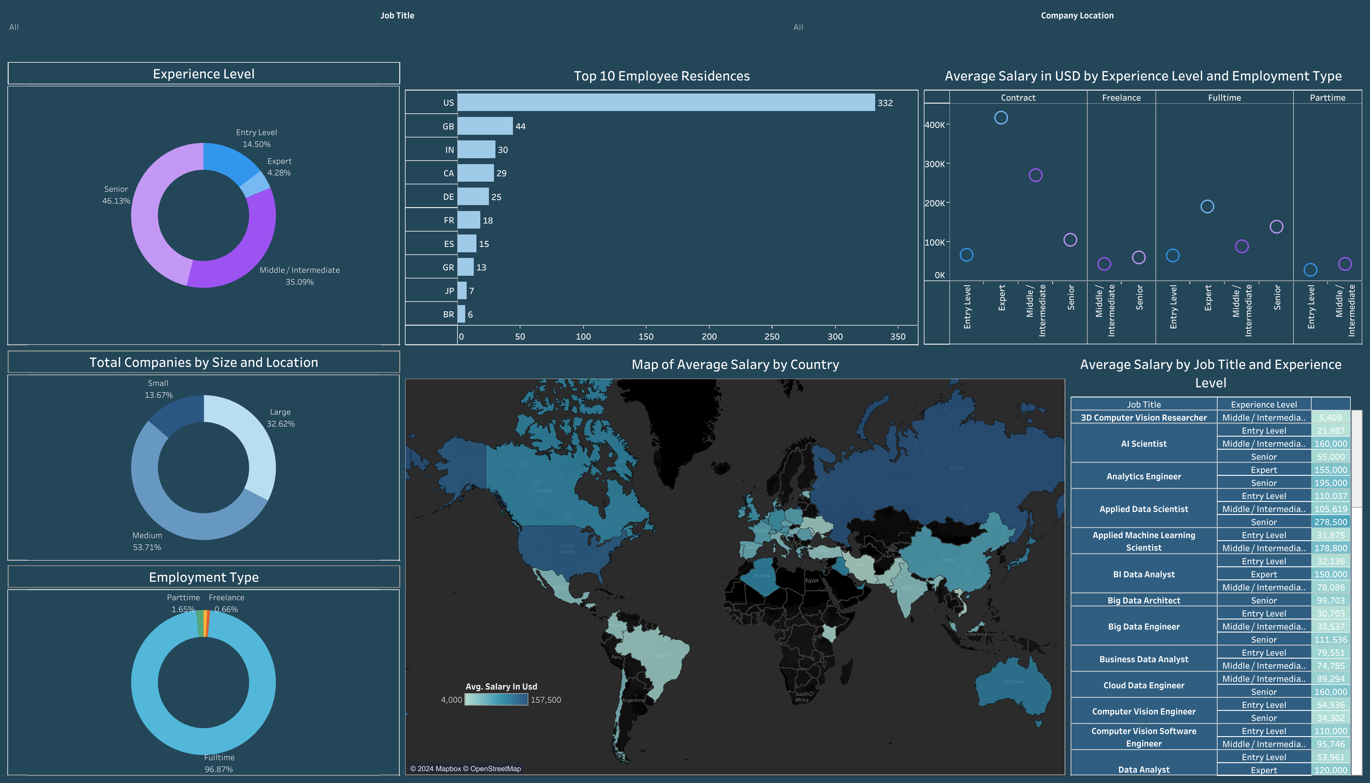 Understanding the landscape of data science salaries is crucial for job seekers and employers alike. To provide a clear picture, I developed a Tableau dashboard showcasing average data science job salaries worldwide.