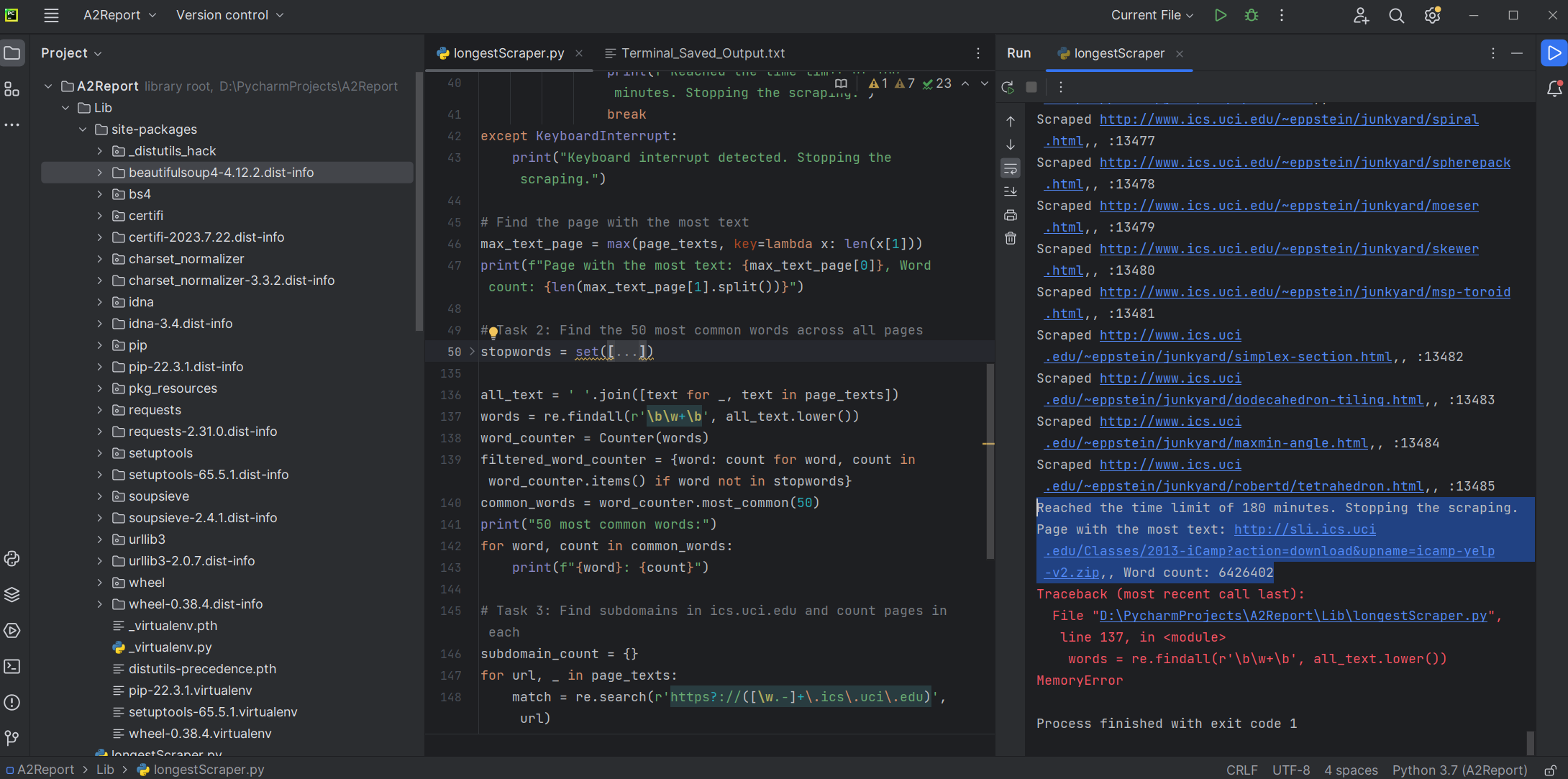 A robust web crawler to scrape extensive textual data from diverse ICS webpages + a custom search engine that indexes and queries data in under 300 milliseconds. This application utilizes libraries such as bs4, pandas, and NLTK, as well as advanced page ranking algorithms to optimize search result relevance and efficiency. This project not only deepened my expertise in web scraping and algorithmic optimization but also highlighted the practical applications of data acquisition.