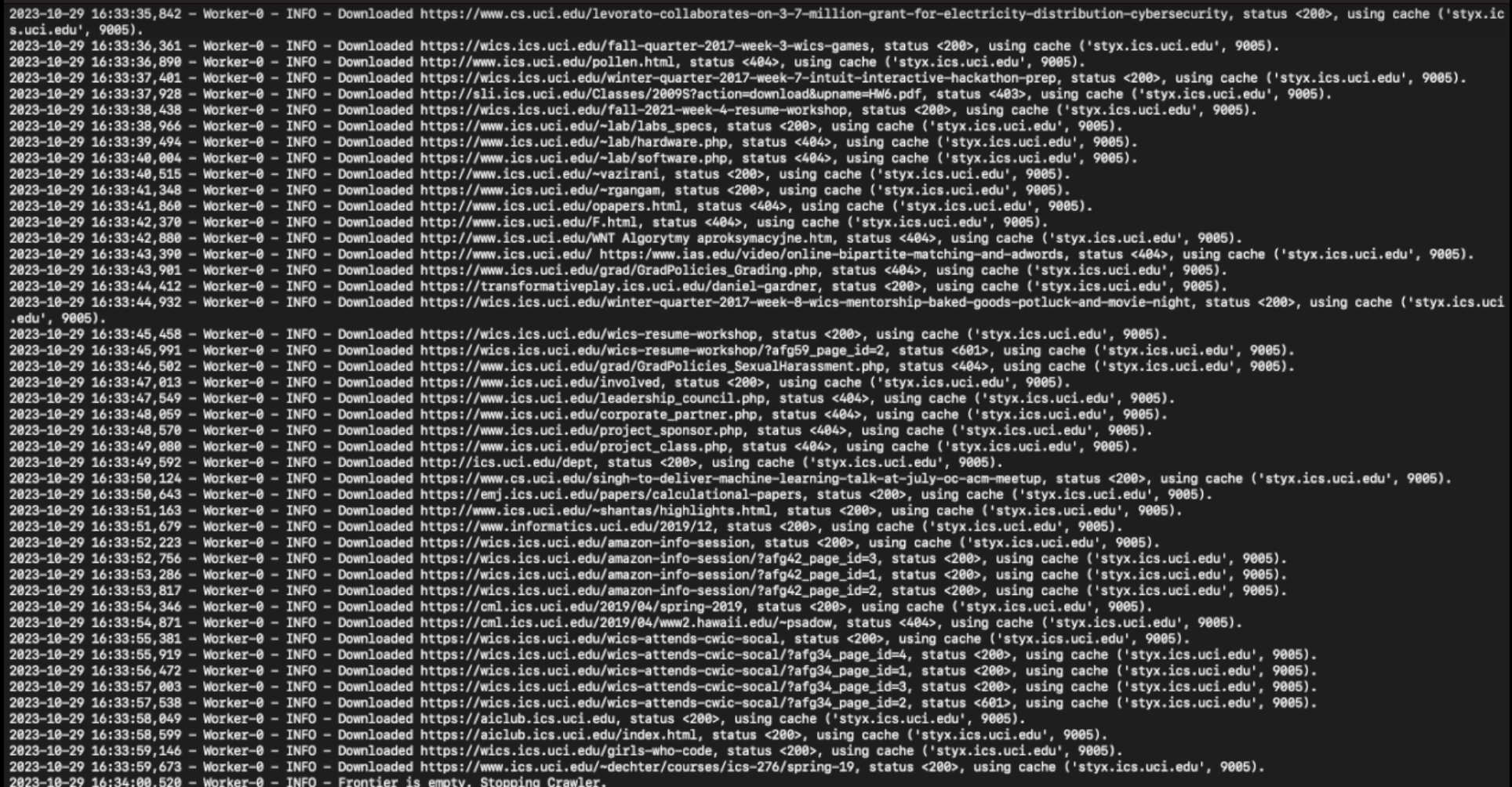 The development of the ICS Search Engine and Web Crawler was a significant milestone in my journey as a data analyst and developer. It deepened my expertise in web scraping, information retrieval, and algorithmic optimization while showcasing the power of Python and related tools in real-world applications. Moving forward, I am excited to apply these skills to new challenges and continue innovating in the field of data-driven technologies.