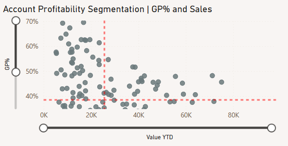 - Profitability Management: The GP% vs Quantity analysis helps identify accounts that may be receiving excessive discounts or those with unfavorable cost structures, allowing for targeted margin improvement initiatives.